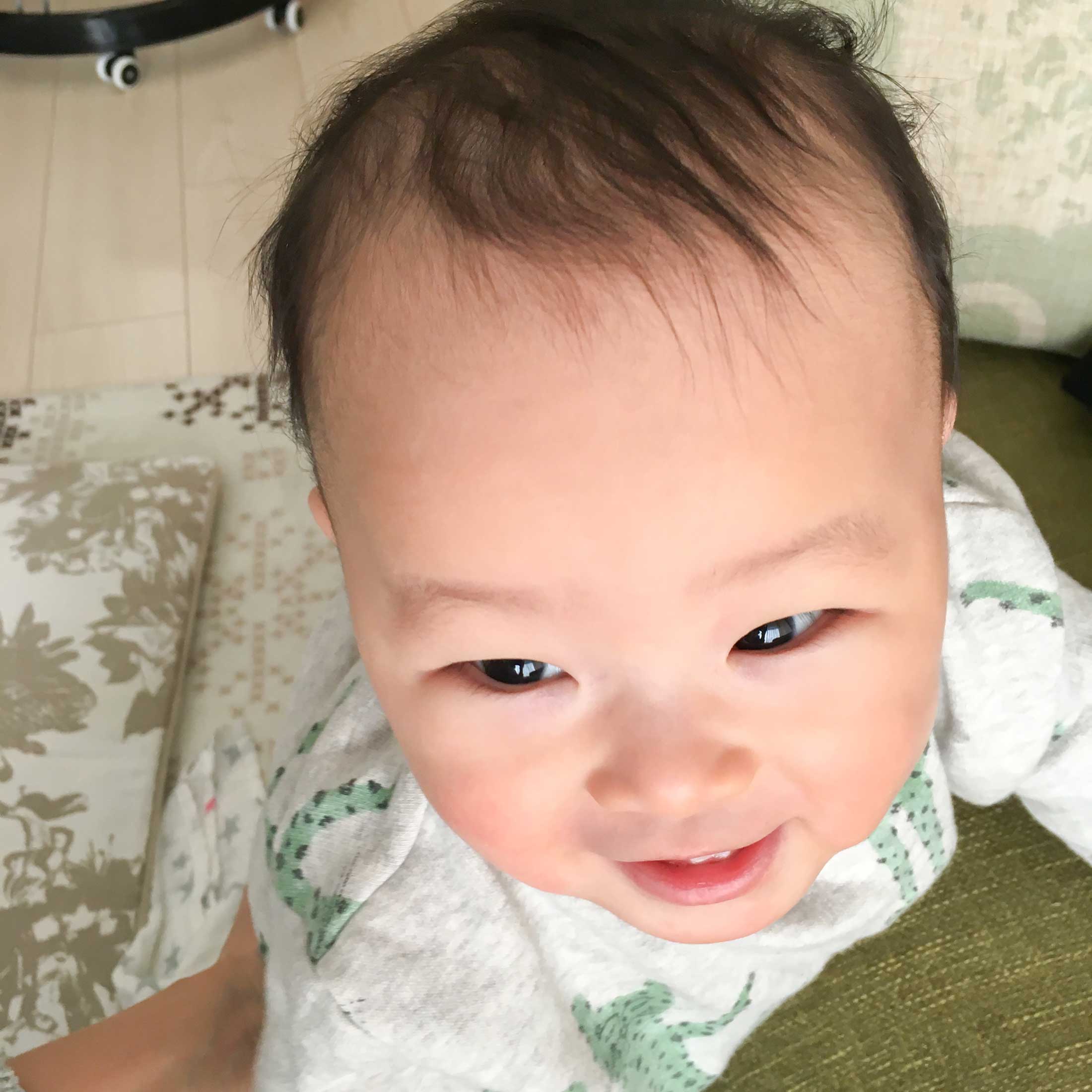 いつも外出する時は帽子を被せてるねんけど、帰ってきて帽子を脱がすと毎回髪の毛がクリクリになってる(笑)